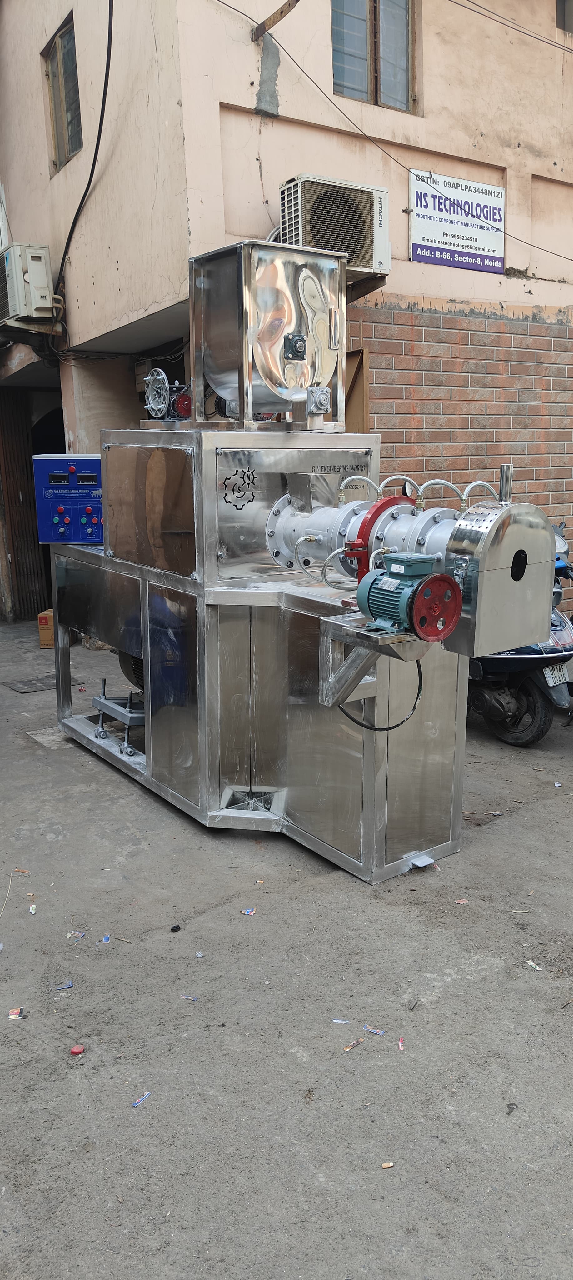ChatGPT said: A Soya Badi Extruder 300 Kg is a highly efficient machine designed for producing protein-rich soya badi (also known as soya chunks, nuggets, or textured vegetable protein) at a medium-scale capacity. With a production output of 300 kilograms per hour, this extruder is ideal for small to medium-sized food processing businesses looking to meet the increasing demand for healthy, plant-based protein products. Built with durable materials and food-grade standards, the machine ensures long service life, hygienic processing, and consistent product quality. The process begins with defatted soy flour or soy meal, which is fed into the extruder through an automatic feeding system. Inside the extruder, the raw material is subjected to high temperature, controlled pressure, and mechanical shear. This combination modifies the protein structure, transforming it into a fibrous and chewy texture that resembles meat. The extruded soya product is then cut into uniform chunks or nuggets, depending on the die used. After extrusion, the soya badi passes through a drying unit, where excess moisture is removed to enhance shelf life and storage stability.